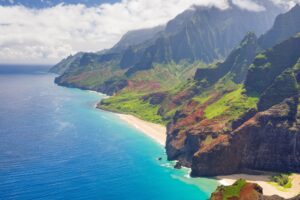 We sail for Hawaii as we relax at Waikiki Beach, in Honolulu, Hawaii. Then, we pass through the castaway islands of French Polynesia:Tahiti, Tonga, and Fiji among them. These stepping stones in the ocean lead us across the International Date Line to New Zealand, which wows with its raw nature and gleaming cities.